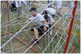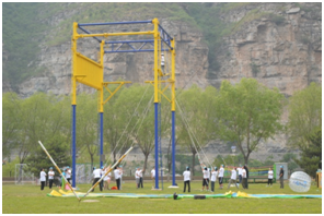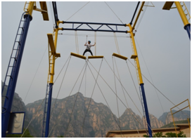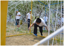 3、勇闖盤絲洞:該項(xiàng)目體現(xiàn)的是考慮問題要敢于打破固有思維模式,勇于挑戰(zhàn)新的方式方法,同樣,缺少團(tuán)隊(duì)精神也必將不能收獲成功的喜悅。這個(gè)挑戰(zhàn)項(xiàng)目看似簡單,需要隊(duì)員單獨(dú)或以合作方式快速穿越彈力繩障礙網(wǎng),進(jìn)行團(tuán)隊(duì)競賽比拼,所以在排兵布陣及前瞻性的統(tǒng)籌安排就大有學(xué)問了。在挑戰(zhàn)中,我們可以清晰的意識(shí)到,作為團(tuán)隊(duì)中的每一個(gè)個(gè)體,都深刻的影響著整個(gè)團(tuán)隊(duì)的步伐。只有每個(gè)人都盡力了,整個(gè)團(tuán)隊(duì)的力量才能夠被激發(fā),才能實(shí)現(xiàn)更高的目標(biāo)。